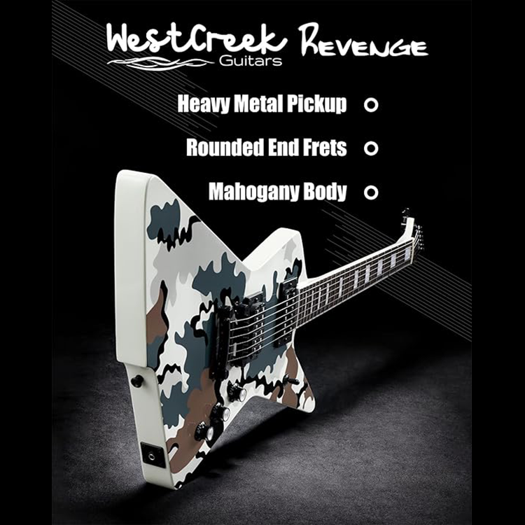WestCreek Revenge Solid Body Electric Guitar, Heavy Metal Guitar, Right Handed, Alnico Humbucker Pickups, Rounded End Jumbo Frets, Bone nut, Rosewood Fretboard, Mahogany Body